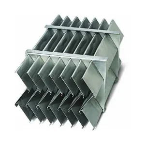 - AISI 304 veya AISI 316L paslanmaz çelikten imal edilen kanatlar 0.6 ila 1.2 mm kalınlığında, özel W/V-tip kanat profili ile tasarlanmıştır. Bu profil, gaz akışını optimize ederken, damlacıkların yüzeye çarpmasını ve etkili bir şekilde ayrıştırılmasını sağlar.